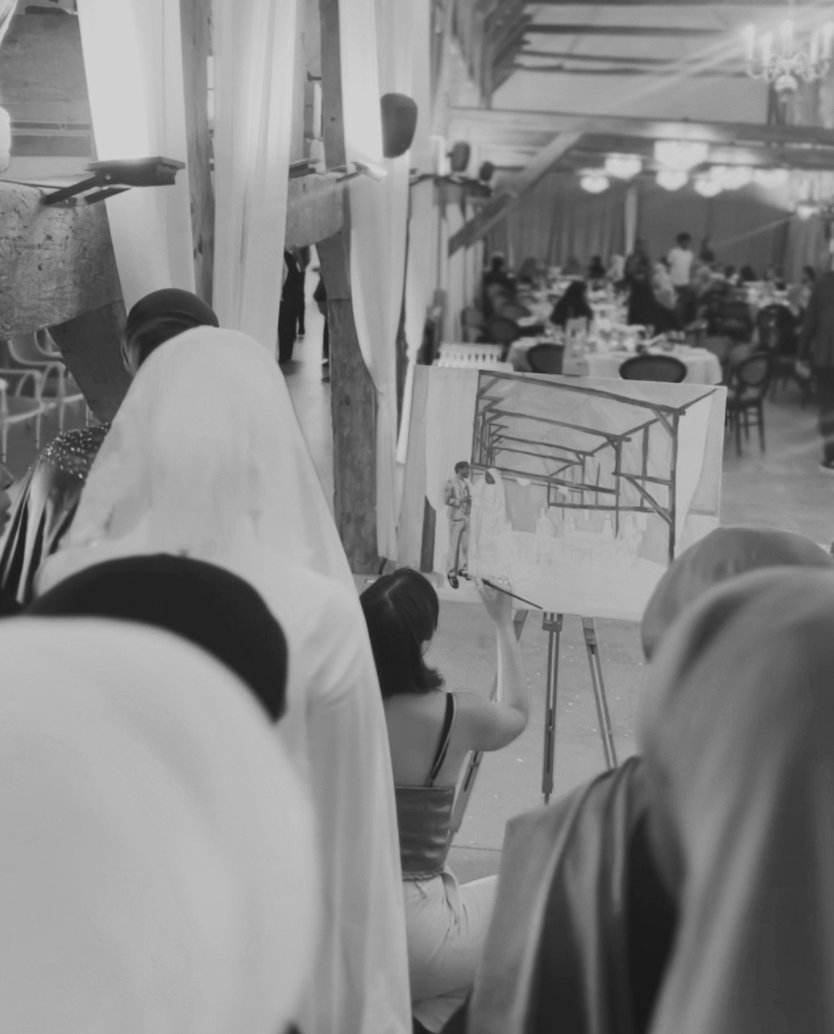 The process begins with a conversation where we explore your wishes and vision for both the wedding and the artwork(s). Some couples have a clear idea, while others prefer to grant full artistic freedom.